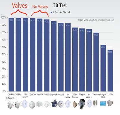 2. If you're wearing a mask with a valve, you are protected. The valve does not bring in any outside air into the mask. Fit-test data has found that masks with valves are often among the highest scoring.