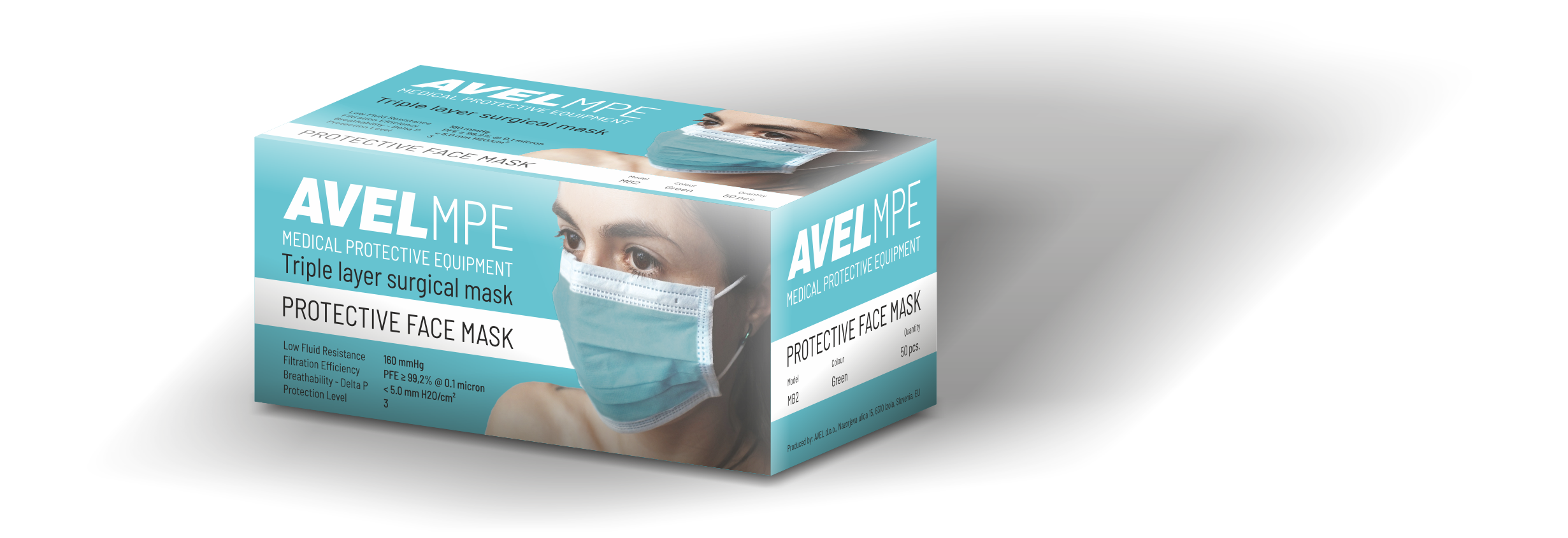 The Avel MB surgical mask is suitable for surgery and also protects your surroundings from viral infections. The microbial filtration layer is made of delicate organic fibers. Surgical face masks, very soft, non-woven fiberglass fabric, three-layer or four-layer, integrated support, latex-free round elastic according to EN 14683 type IIR. Bacterial filtration efficiency > 99%.